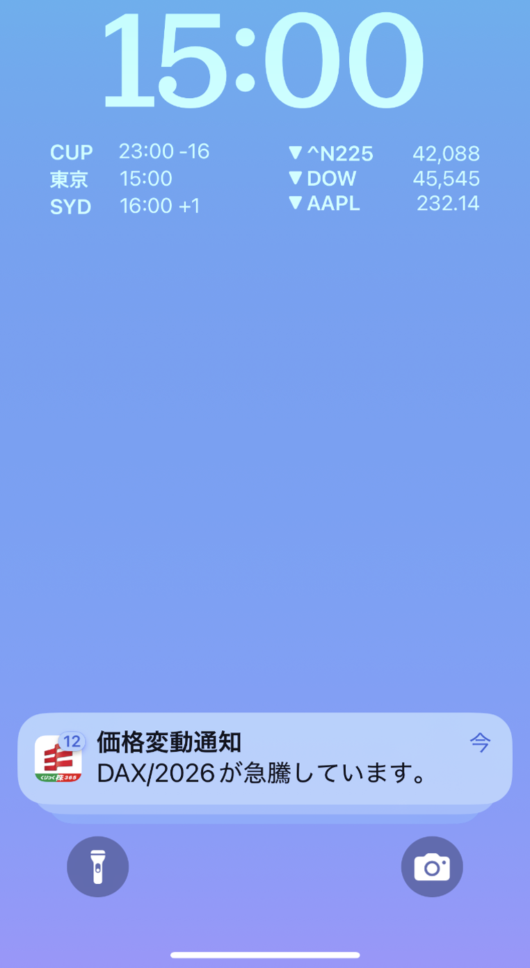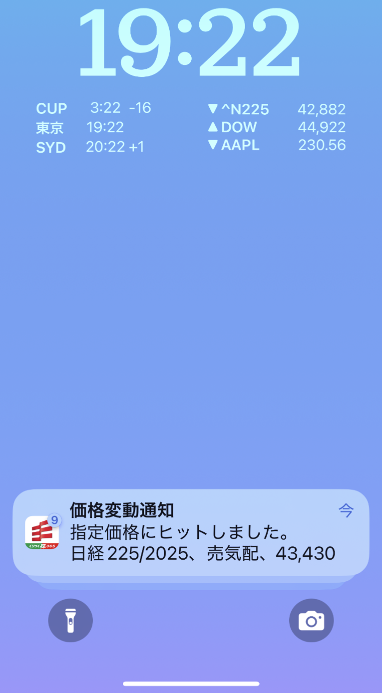 株価指数のリアルタイムレートを配信。レートをタップした際に遷移する画面を選択できるので、素早くチャートや注文画面へ移動できます。