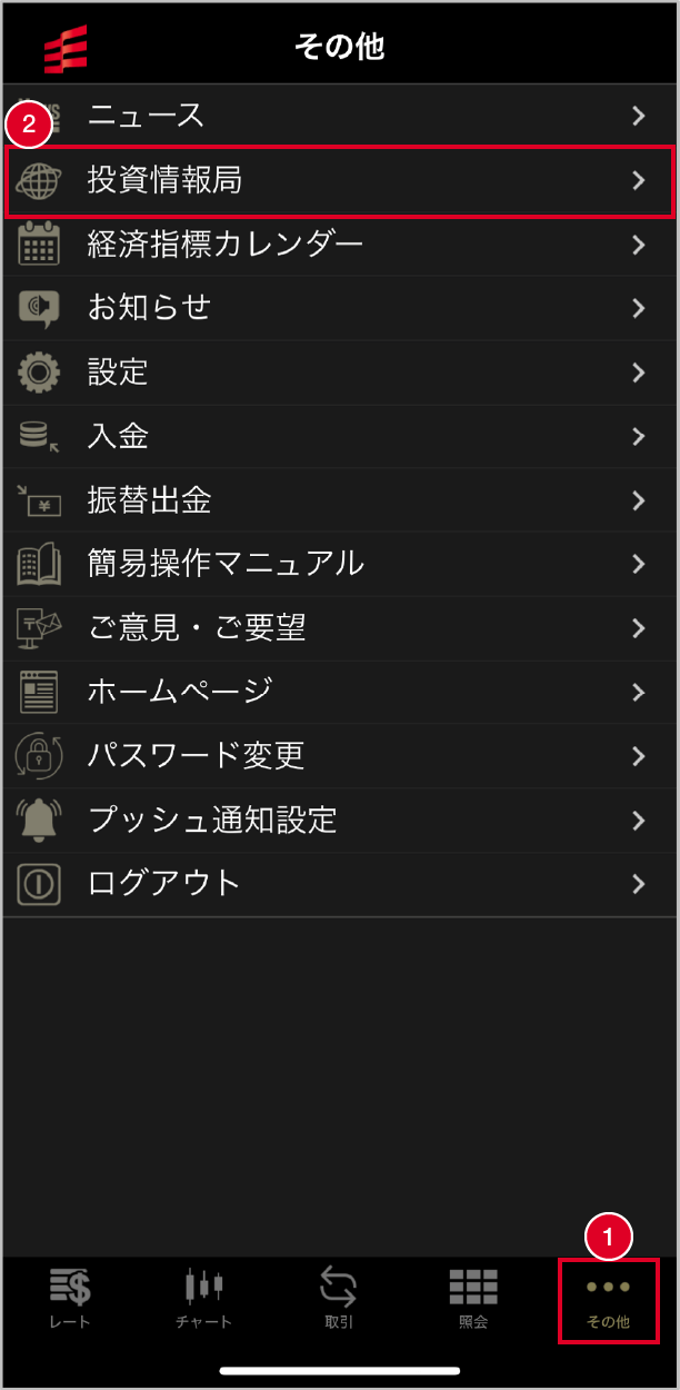 【投資情報局】をタップします。