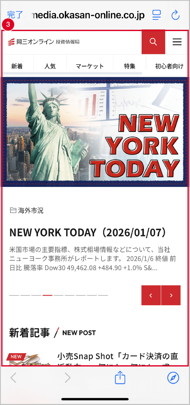 投資情報局が表示されます。投資情報局では、セミナー動画や当社オリジナルレポート等の投資に役立つ情報が閲覧できます。