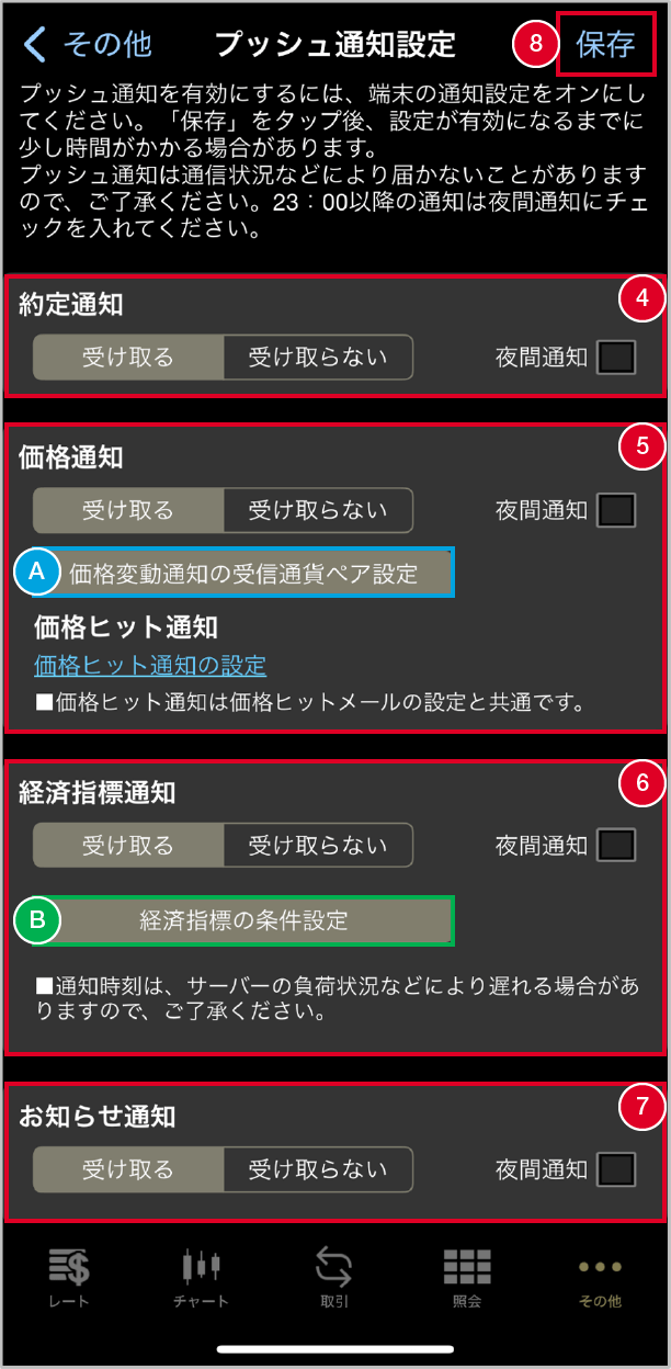 取引に関する情報や重要なお知らせをリアルタイムにお知らせします。