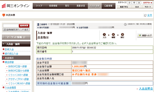 出金指示が完了します。